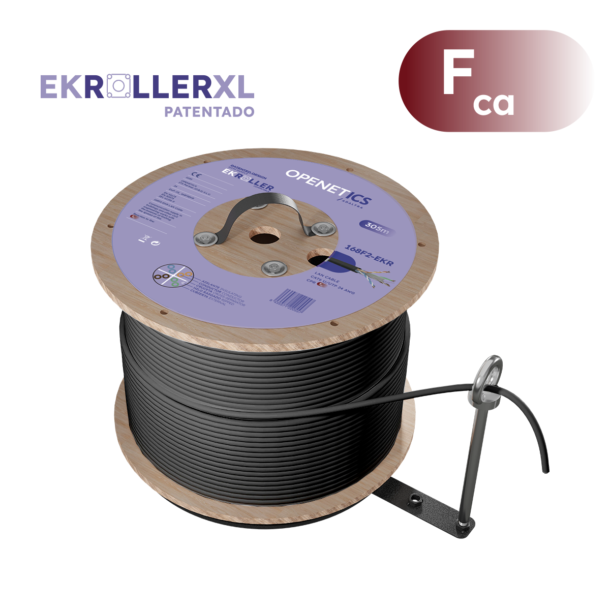 168F2-EKR 168F2-EKR Cabo Cat. 6 U/UTP rígido PE Fca para exterior, em bobina de 305 m com sistema EK ROLLER, cor preta Image Certificado CE